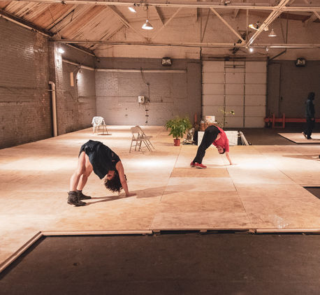 GIANTS, a work facilitated by Bailey Allshouse, is a culmination of a 4 month process with dancers; Rachel Andes, Britney Birr, and Shannon White. The work supplies opportunity for discovering delicacy in both structure and bodily form, while it's construct is a rotating landscape that depicts different worlds of primitivity. The work then serves as a playscape for the artists to explore their biggest, strongest, fastest, as well as quietest selves.
