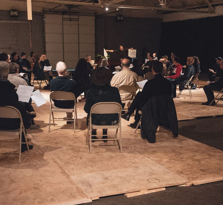 "Visions for the End of the World" begins with a showman who welcomes the audience to the pageant he is about to present: a doomsday prophet's series of apocalyptical visions. These visions’ performances range from energetic dance routines to desperate prayer to sea shanties and shipwrecks, each tied together with poetic dialogue, vigorous physicality, and delicately crafted stage images. Though dark and strange in moments, the 40 minute piece is accessible and searching: an open invitation to look toward the future honestly, empathetically, gratefully.